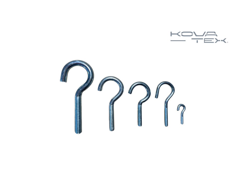 Otvorený háčik s metrickým závitom sa často používa na upevnenie ľahkých predmetov do dreva alebo muriva.